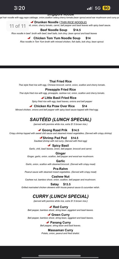 Minced chicken, bell pepper and onions with spicy basil sauce topped with fried egg. Spicy.